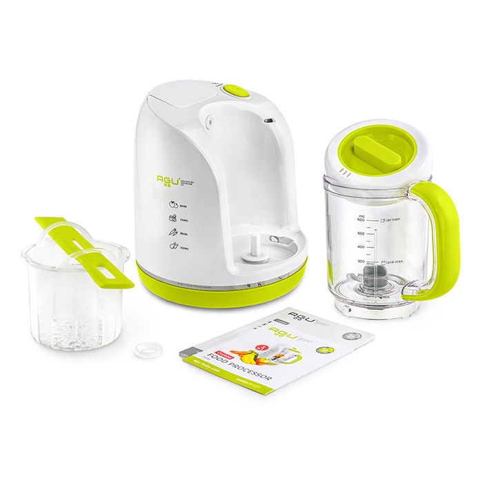 Beebile püreede ja toitude valmistamiseks mõeldud kompaktne ja mitmekülgne kombain AGU 3-in-1 sobib igasse kööki ja võtab enda kanda tervisliku ja maitsva toidu valmistamise!